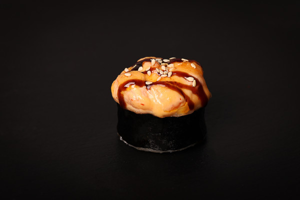 serek Cremette, ogórek, łosoś, spicy sos, sos unagi,sezam