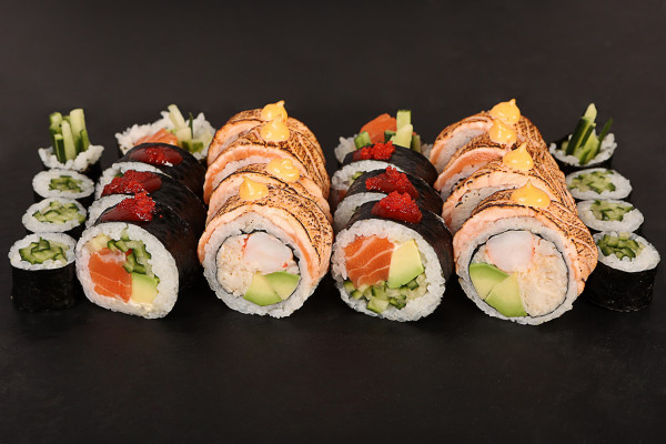 Przypalona niespodzianka, Futomaki Łosoś Pikantny,Hosomaki z ogórkiem (24 szt)