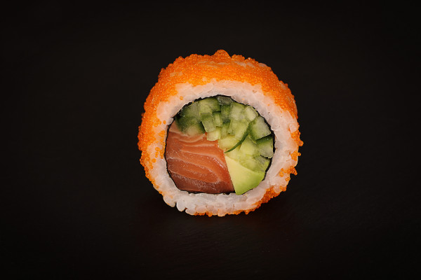 łosoś,majonez japoński , awokado, ogórek, tobiko ot gory