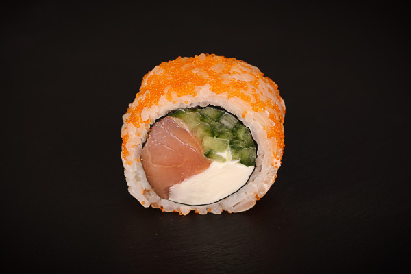łosoś wędzony, tobiko, ogórek, ser Cremette
