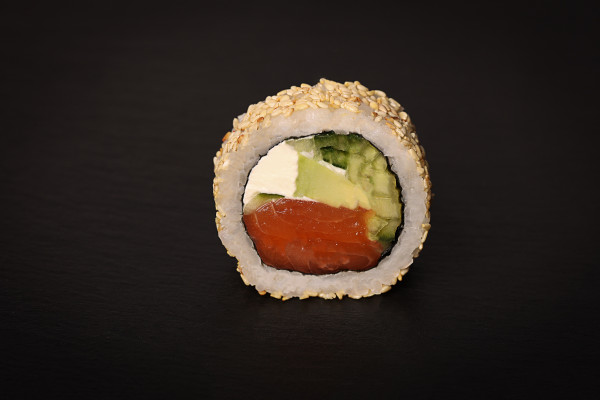 ser Cremette,ogórek,łosoś, sezam, awokado