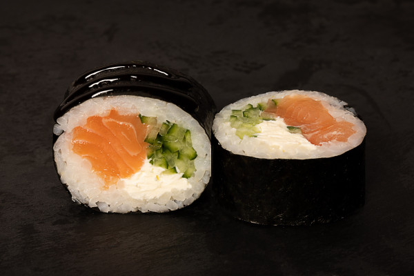 łosoś, ser Cremette, ogórek, sos teriyaki