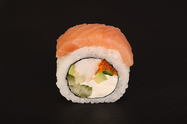 Ser Cremette, ogórek, awokado, tobiko, krewetki,łosoś wędzony od góry