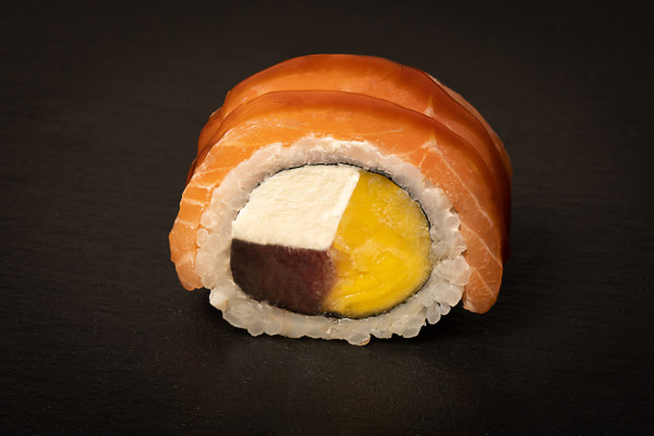 ryż, nori , łosoś, ser Cremette ,tuńczyk, mango